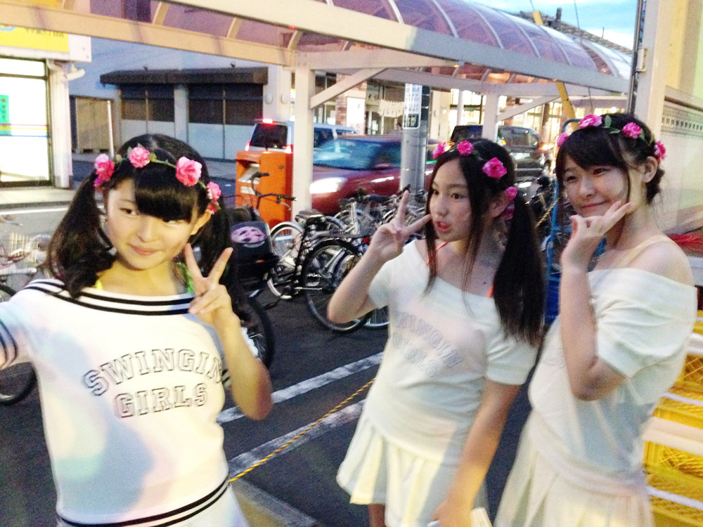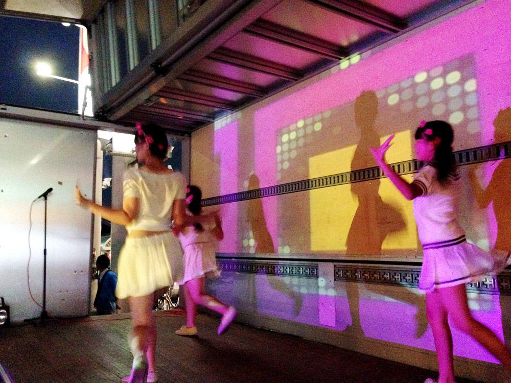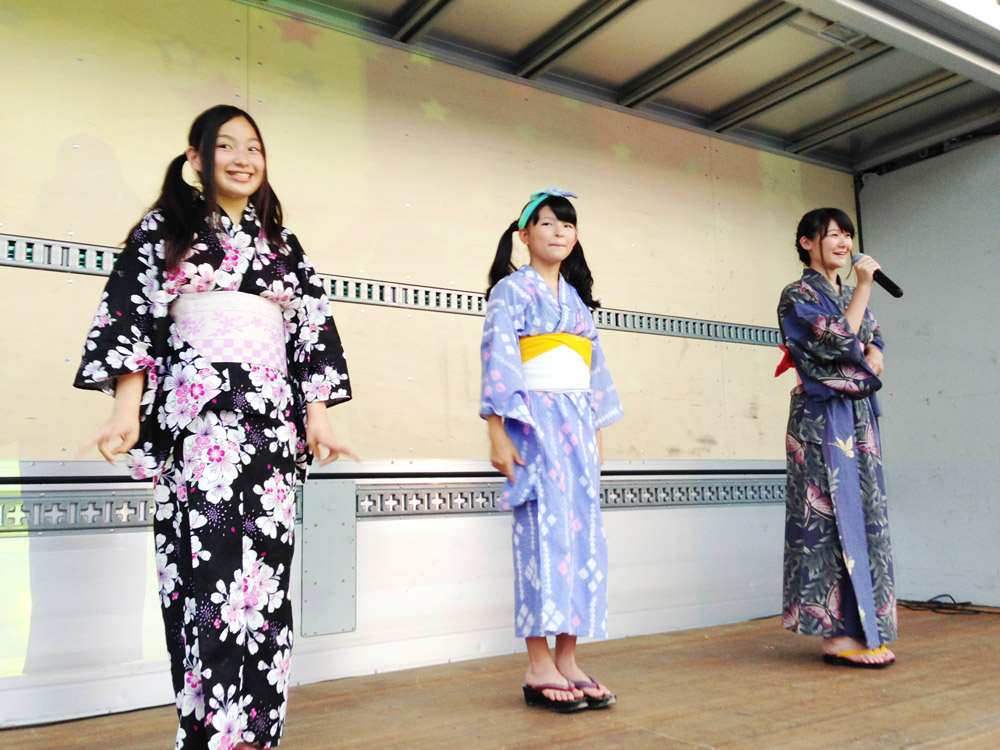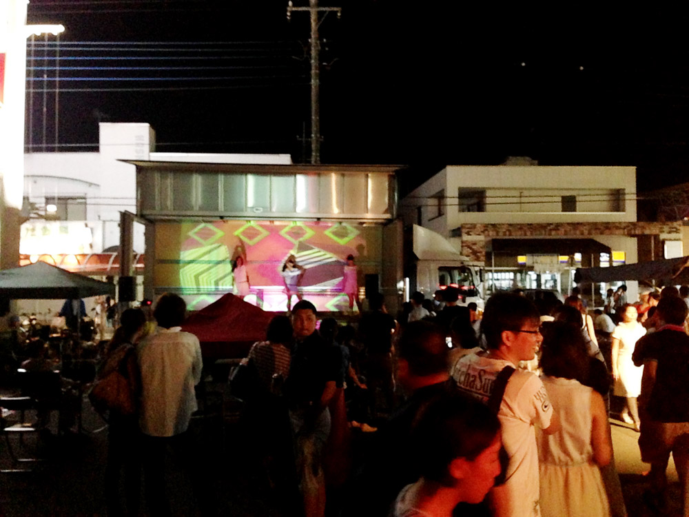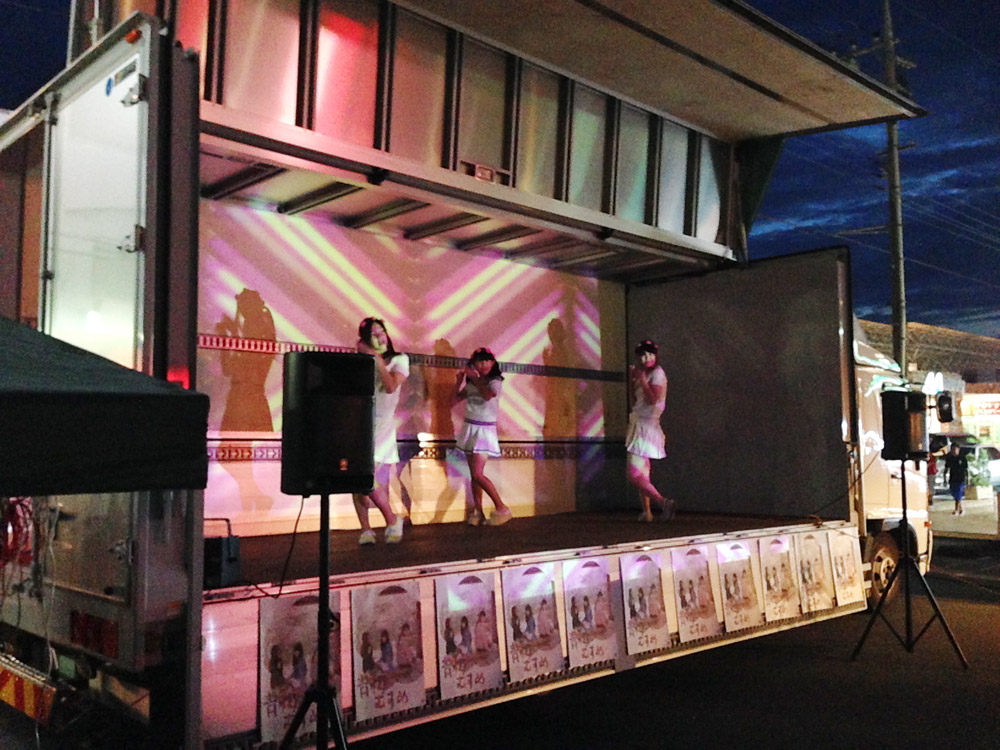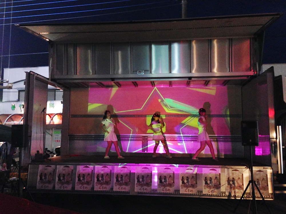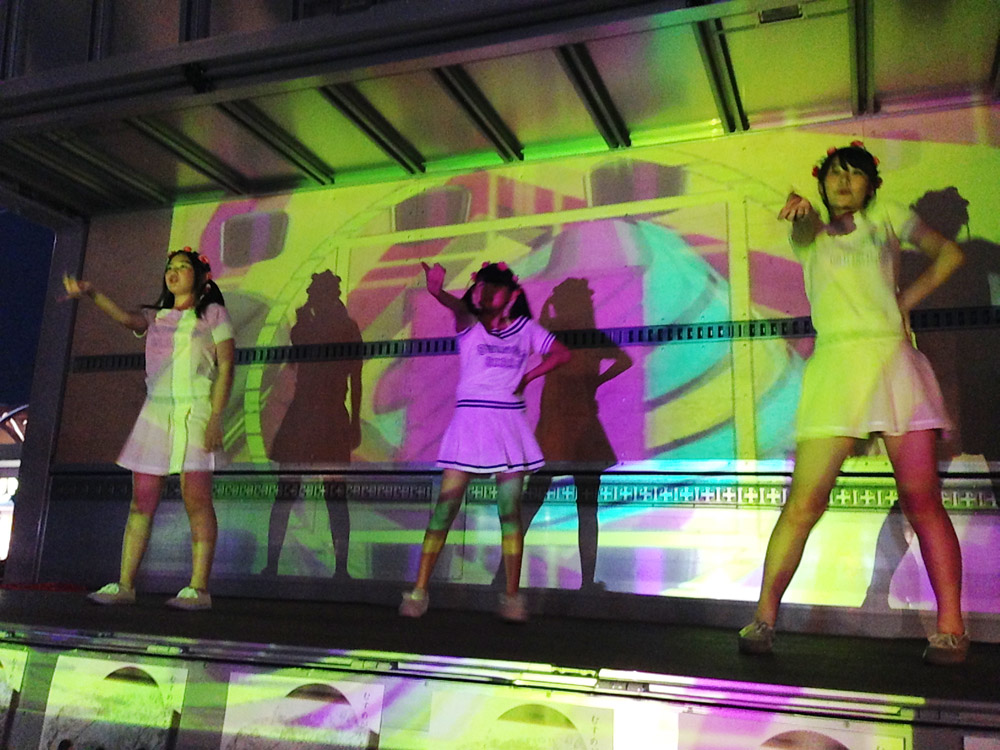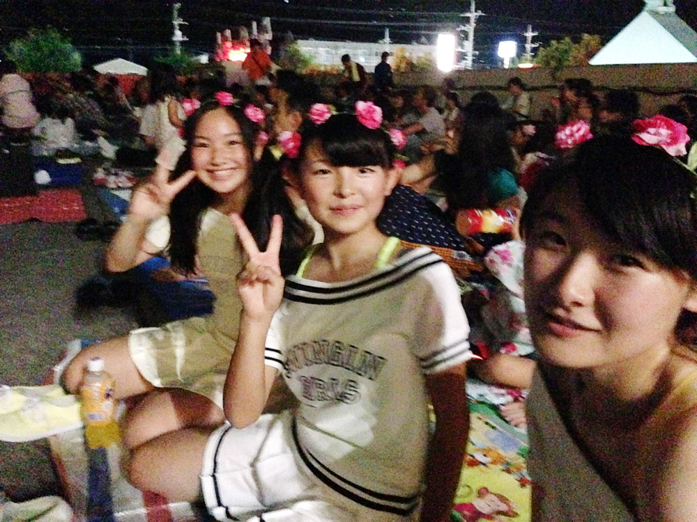 暗くなって衣装替えをし、花火の合間に3人でダンスを披露。